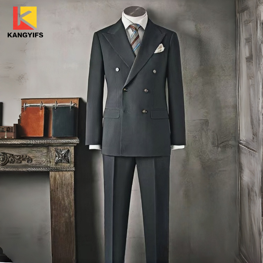 Σετ επαγγελματικό casual κοστούμι KANGYIFS σκούρο γκρι με διπλό στήθος για άνδρες, ένα ρετρό επίσημο ένδυμα που αποπνέει ένα έγκυρο επιχειρηματικό στυλ